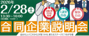 2月も後半ですね。大雪に見舞われた地域もありましたが、皆様の所は大丈夫でしたでしょうか。 来る2月28日(土)、「ミドルシニア世代対象の合同企業説明会」に参加いたします。 会場 フォルテワジマ4階中ホ […]