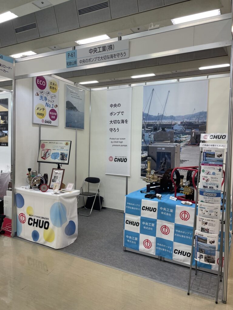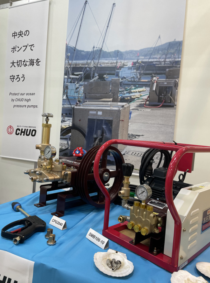 牡蠣殻を洗浄している動画をご覧になり、「こんなに洗うの?すごい綺麗になってるやん。牡蠣が高いのも納得するわ~」と言って行かれる方、「和歌山にこんな会社あったの」と驚かれる方、「MAX 20MPa出るのにこんなにコンパクトなんだね」と機械に興味を持ってくださる方。展示会に出展し、当社高圧プランジャポンプ・洗浄機を広く知って頂きたいのは勿論ですが、当社は第一次産業のお客様が多いので、ふだん皆様が口にしているものがどのような過程を経て、製造されているかについても知って頂く良い機会になったのではないかと思います。多くの養鶏場では、車輛が敷地内に入る前にゲートにて消毒されている(鳥インフル予防)ことも、お話させて頂きました。